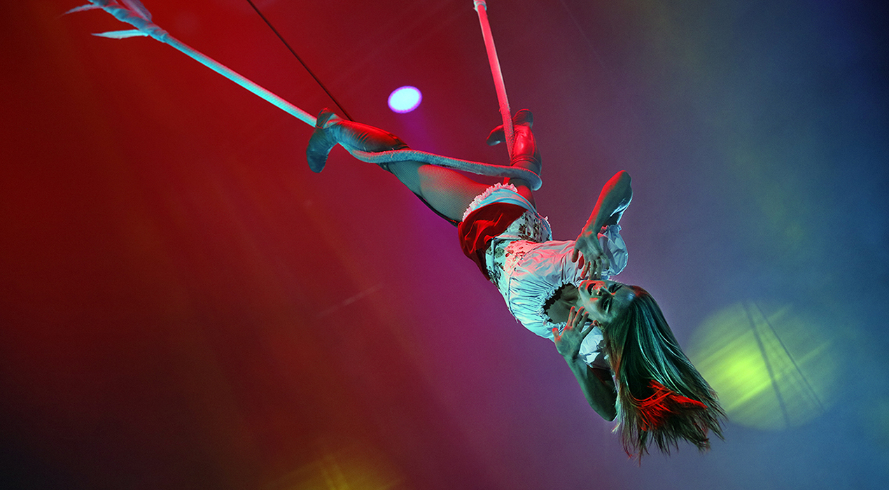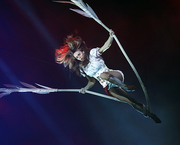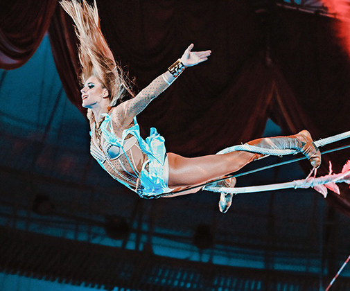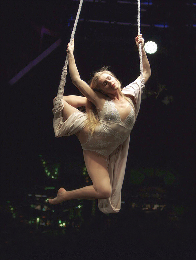 Также Маргарита была приглашена и в другие европейские шоу. На данном фото – трапеция в статике на сцене Палаццо Коломбино в Швейцарии.